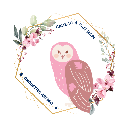 La chouette, emblème de ma marque figure visuellement dans le C du logo elle emporte dans son bec mes messages de bonheur. Elle est un des 4 éléments fondamentaux du nom de ma marque. Symbole de sagesse et de bienveillance, avec cette touche de mystère et de magie. Elle reflète parfaitement l’esprit que je souhaite insuffler à travers mes créations uniques et artisanales.